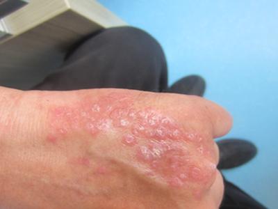 急性泛发型发疹性脓疱病,是在水肿性红斑的基础上出现密集的无菌性小脓疱,很快汇合成脓湖,皮损泛发分布对称;伴有发热和白细胞增高。病程有自限性,一般2-3周会自行消退。